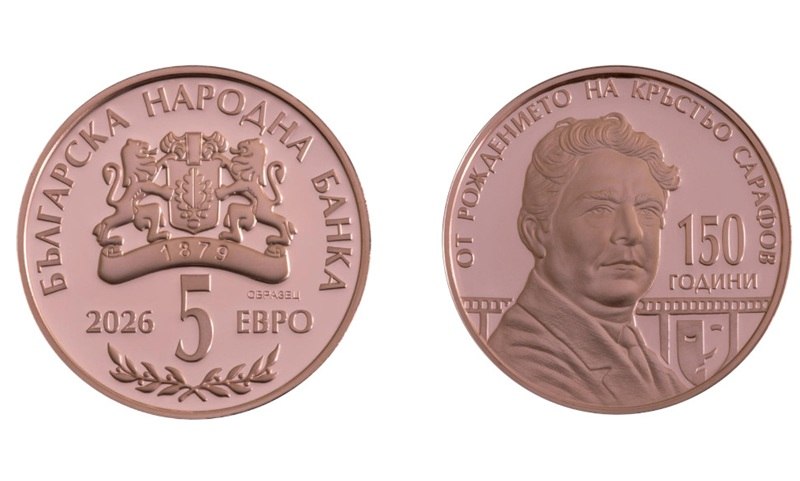 Памятную новинку номиналом 5 евро представили в Болгарии. Монету отчеканили из меди в серии «Болгарские творцы» и посвятили 150-летию со дня рождения выдающегося актера театра и кино Кръстю Сарафову. В центре реверса можно увидеть портрет актера. Бюст исполнили с высокой степенью детализации, что передает его мимику и харизму. На фоне снизу отчеканили стилизованную кинопленку, на которой изобразили театральную маску. Над ней — юбилейная дата. По окружности — надпись, которую посвятили Кръстю Сарафову. Автором дизайна выступили Пламена Чернева и Преслава Чернева.